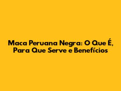 Para Que Serve a Maca Peruana Negra?