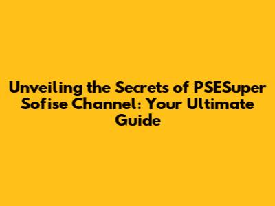 Unveiling The Secrets Of PSESuper Sofise Channel: Your Ultimate Guide
