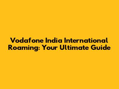 Vodafone India International Roaming: Your Ultimate Guide