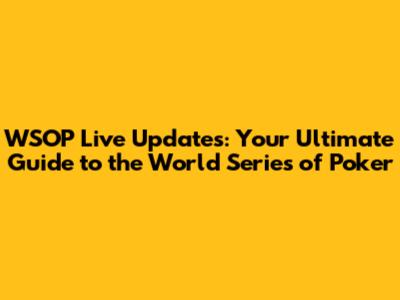 WSOP Live Updates: Your Ultimate Guide To The World Series Of Poker